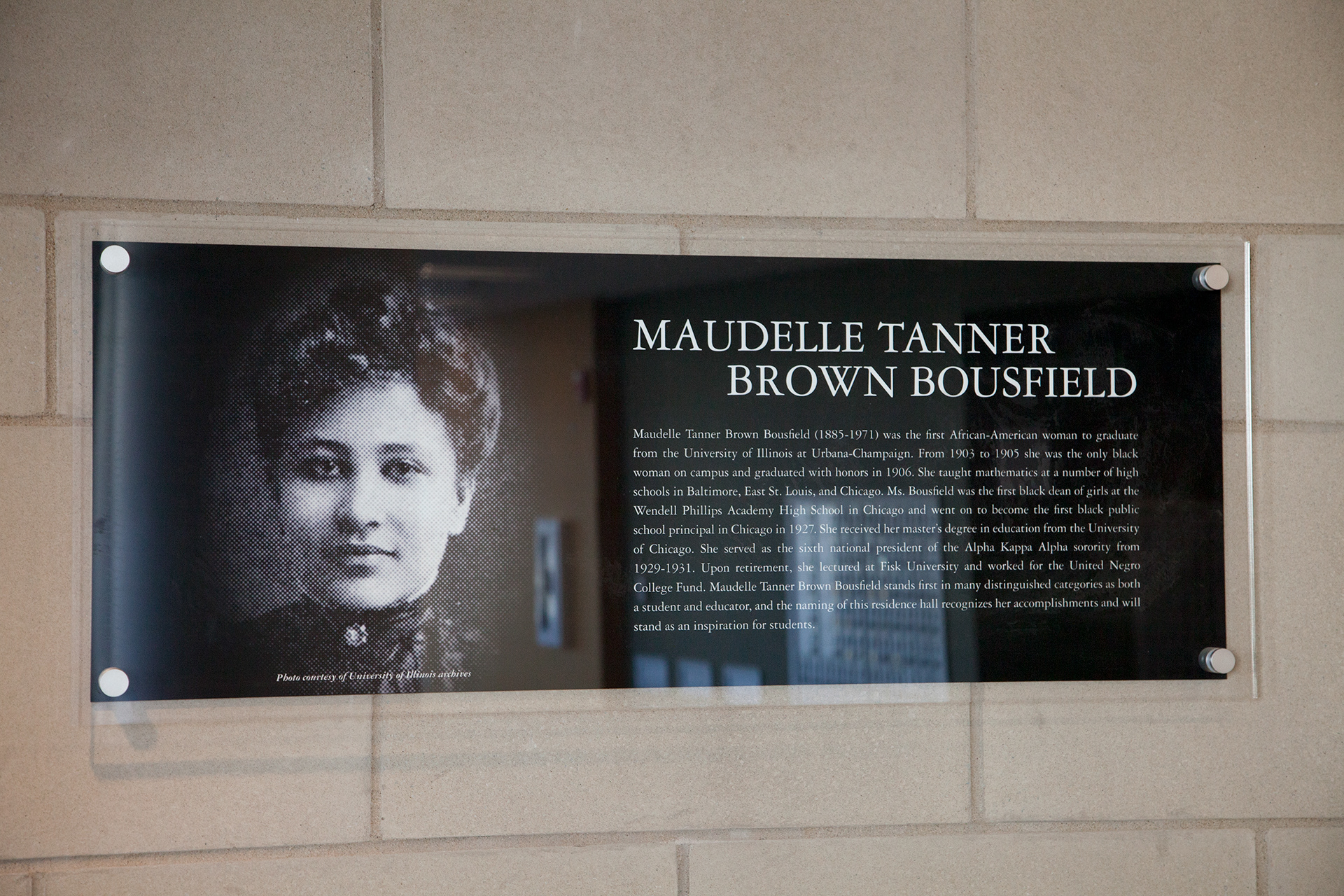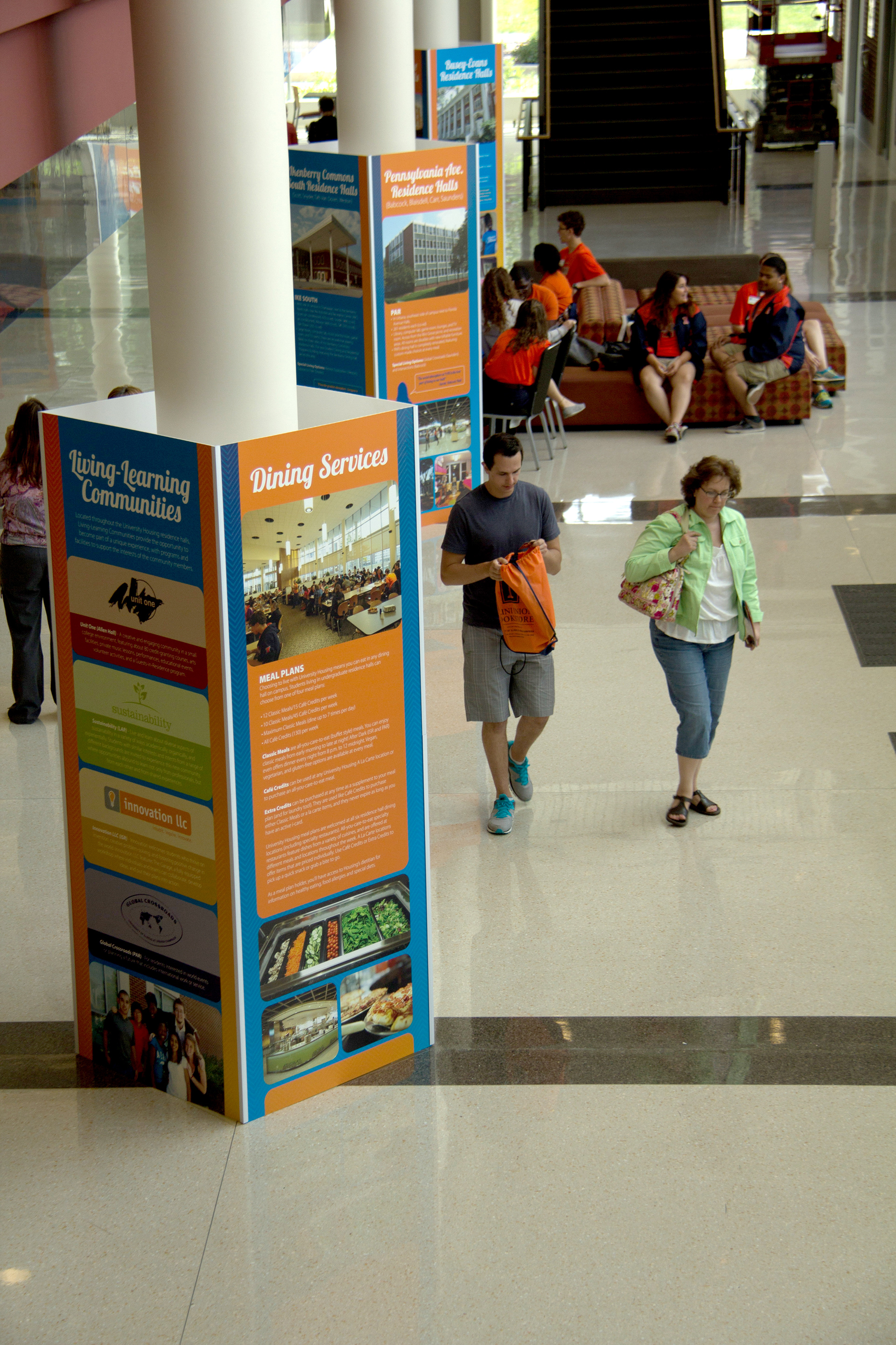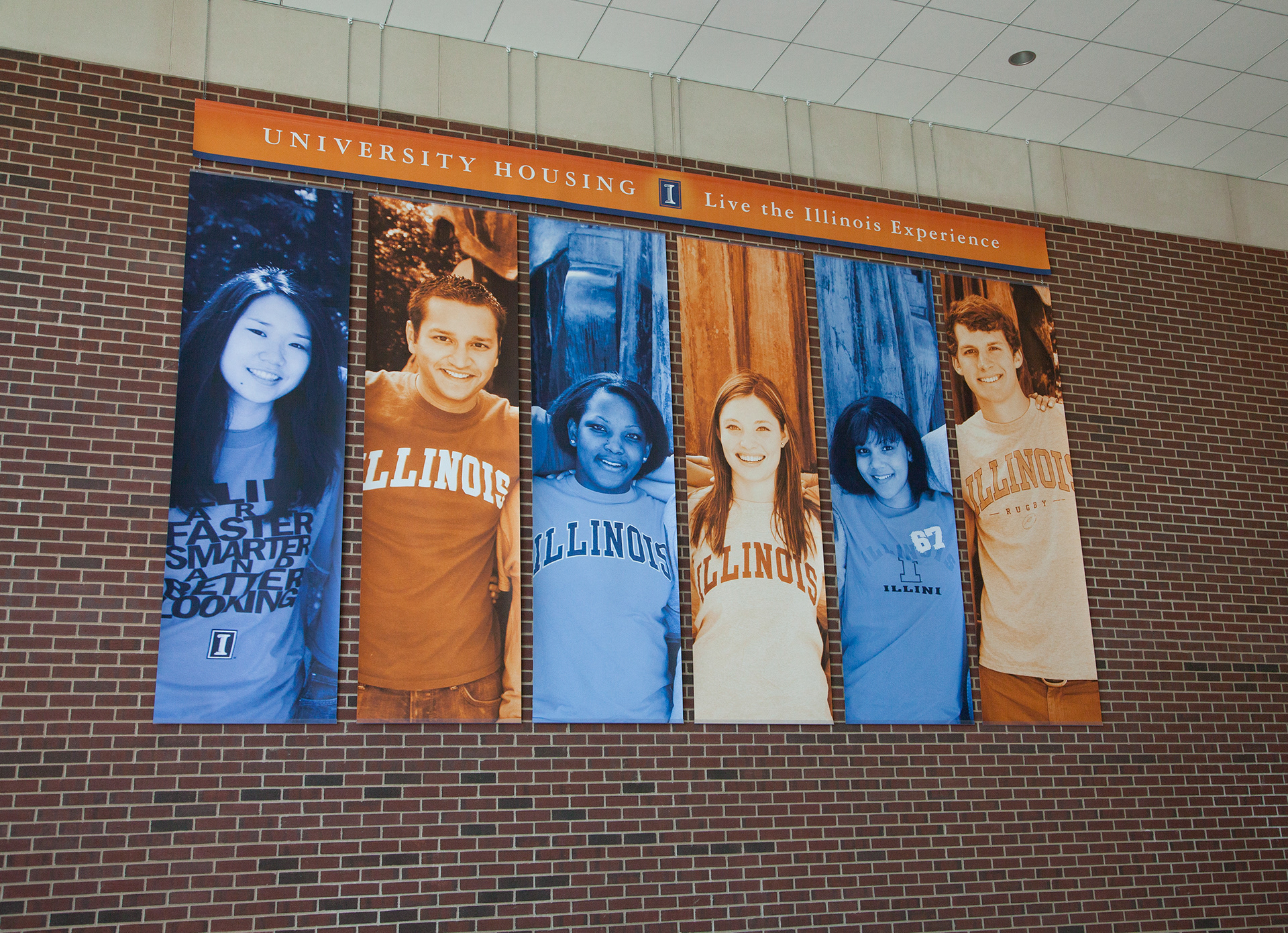 Various examples of environmental signage designed and printed for University of Illinois Housing.