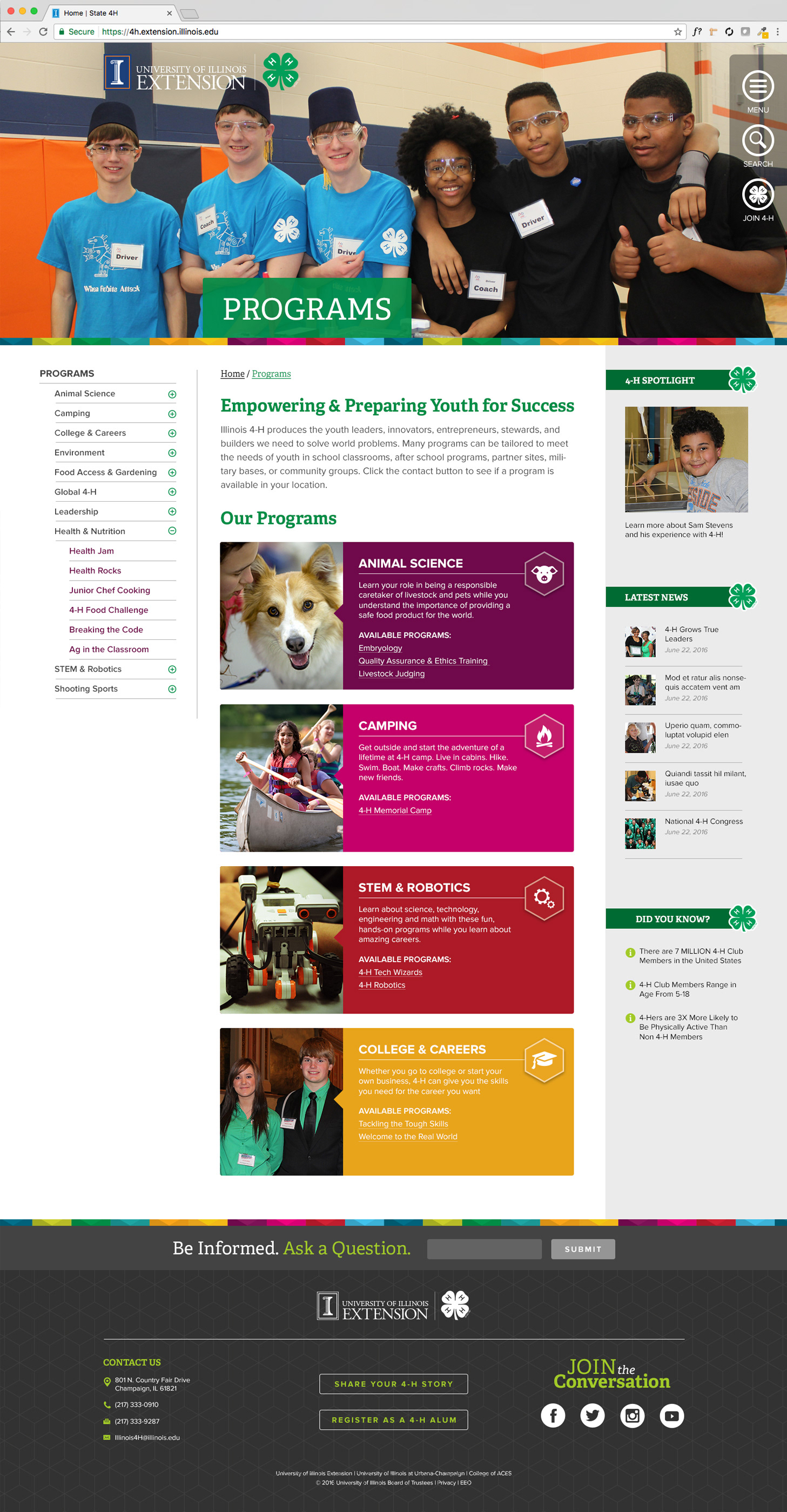 This site was planned, designed and built for Illinois 4-H. The goal was to completely overhaul the Illinois 4-H brand and web presence.