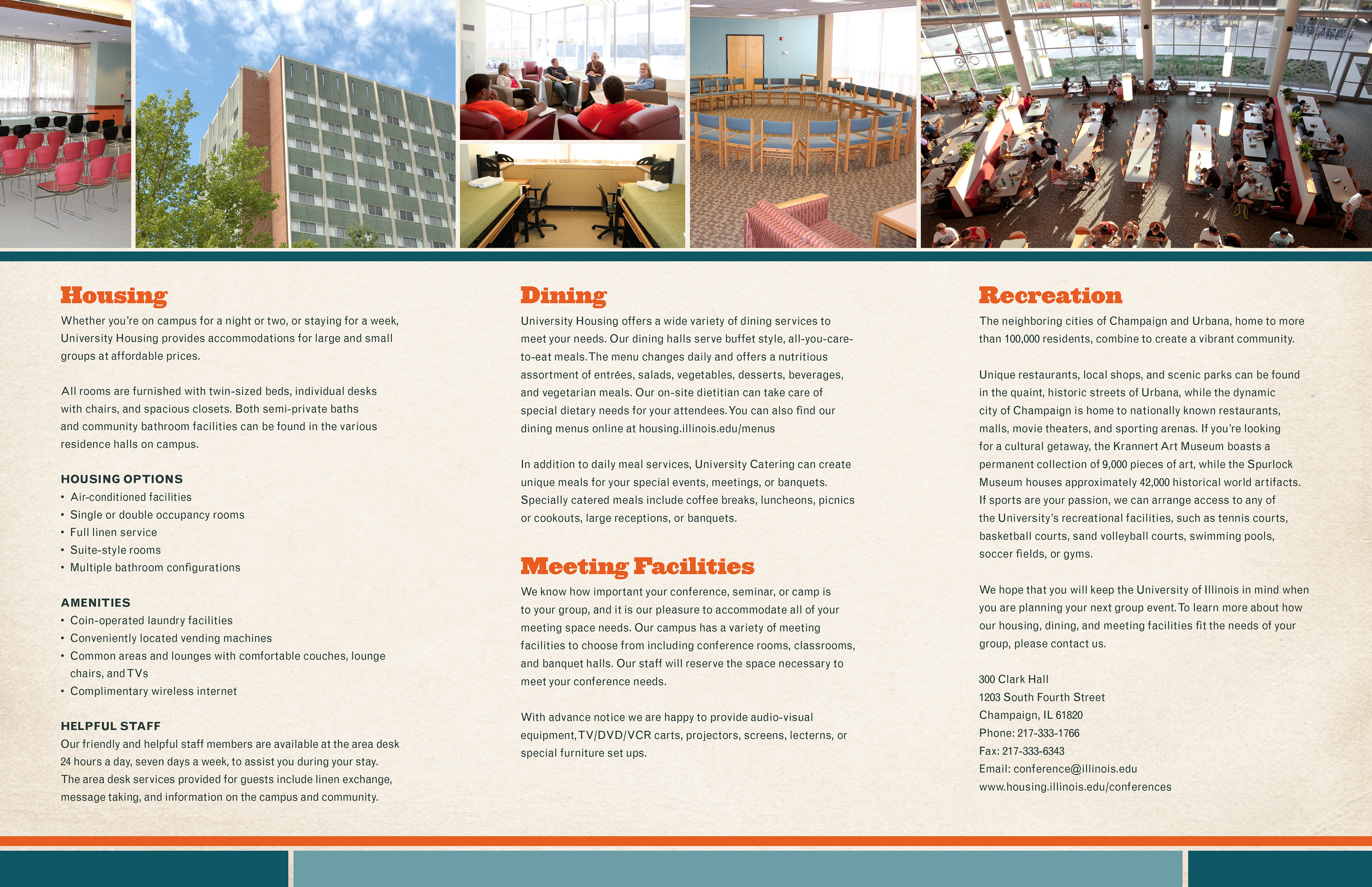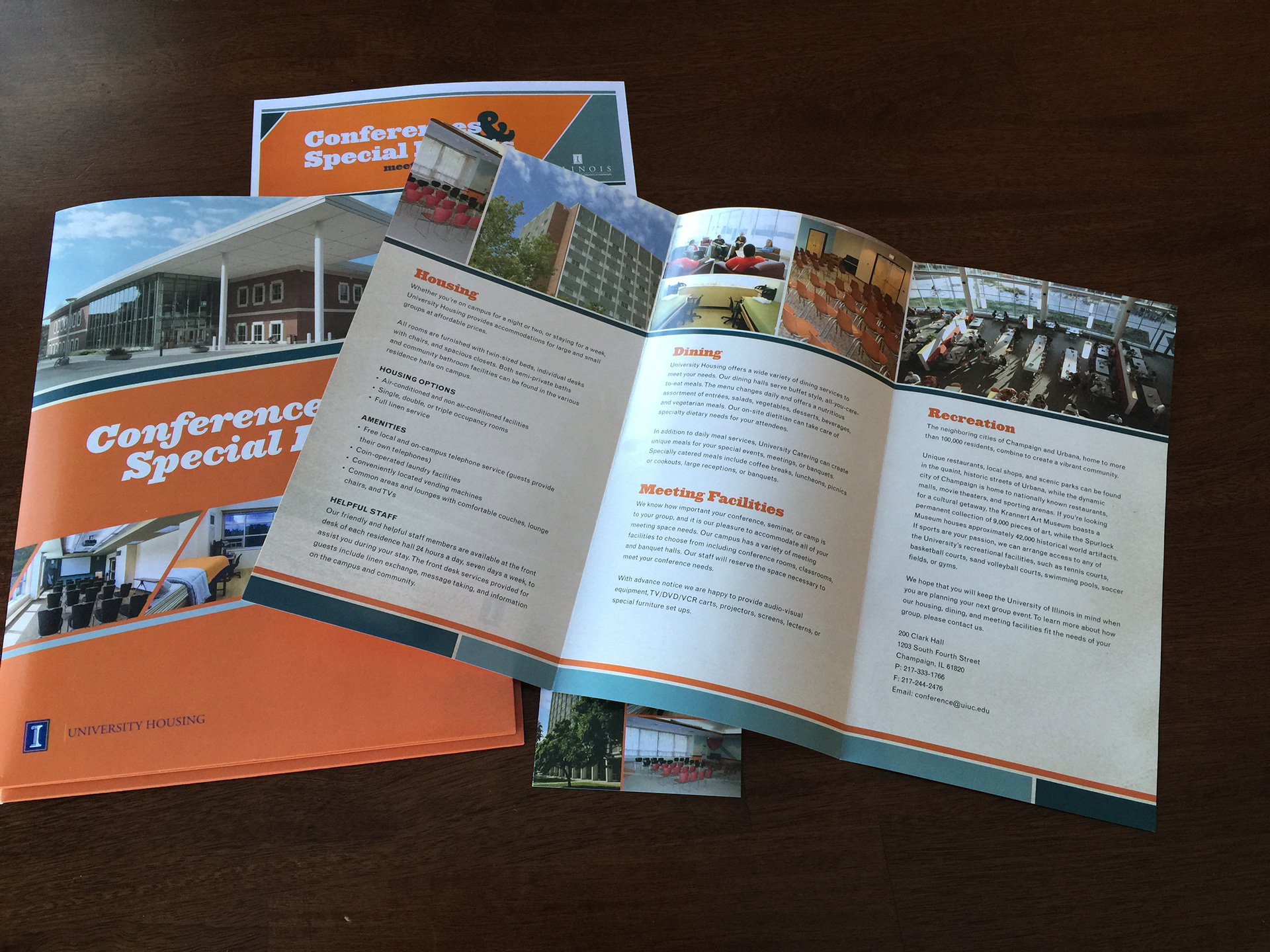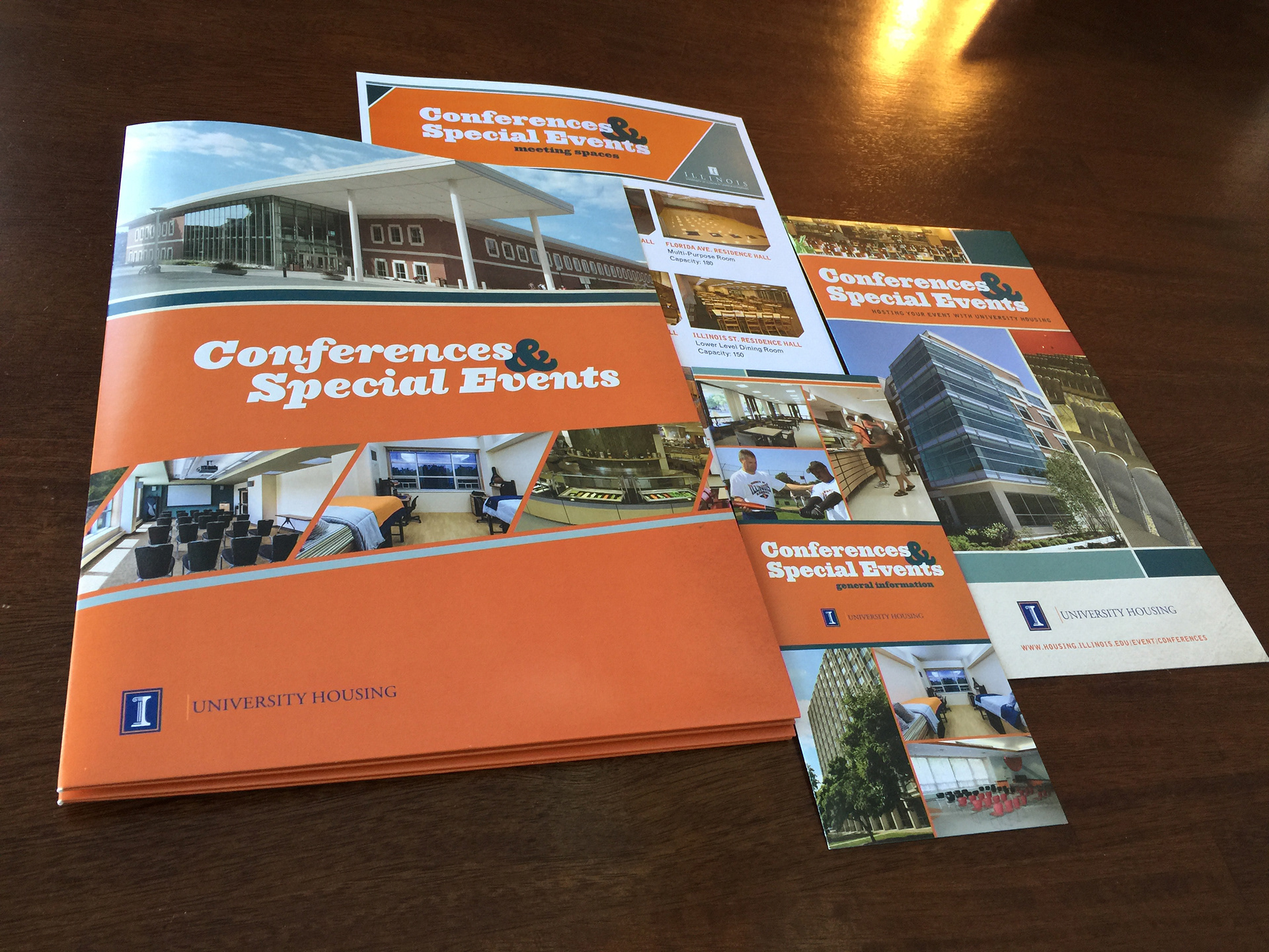 Print materials designed to promote conference and event spaces at the University of Illinois.