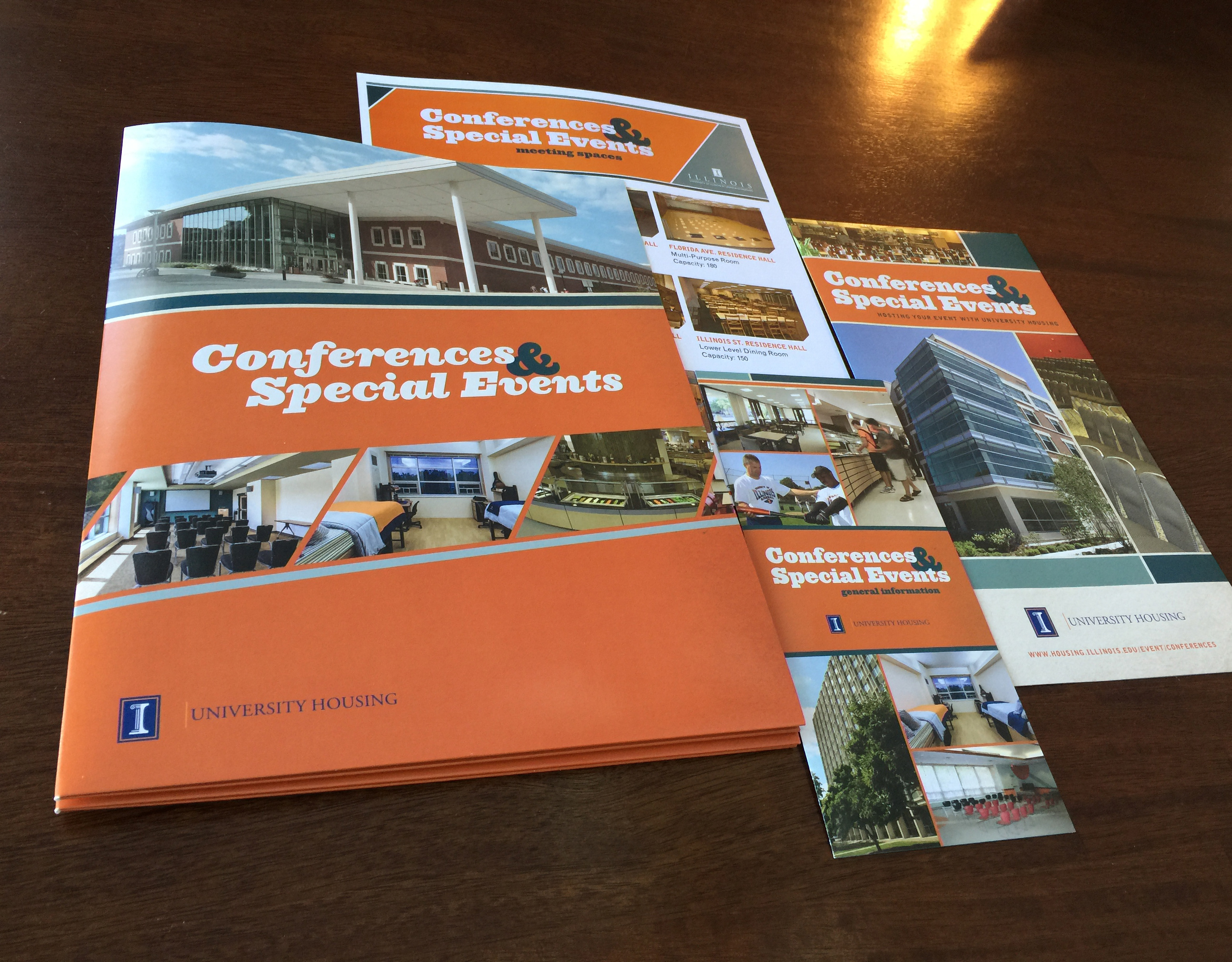 Print materials designed to promote conference and event spaces at the University of Illinois.