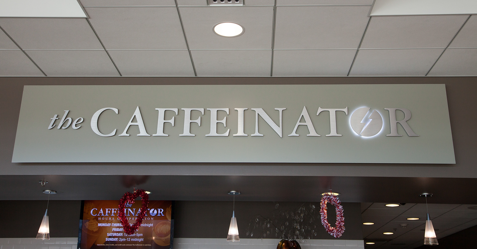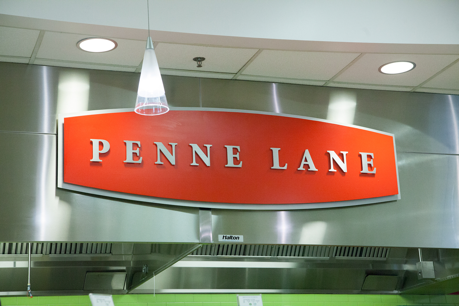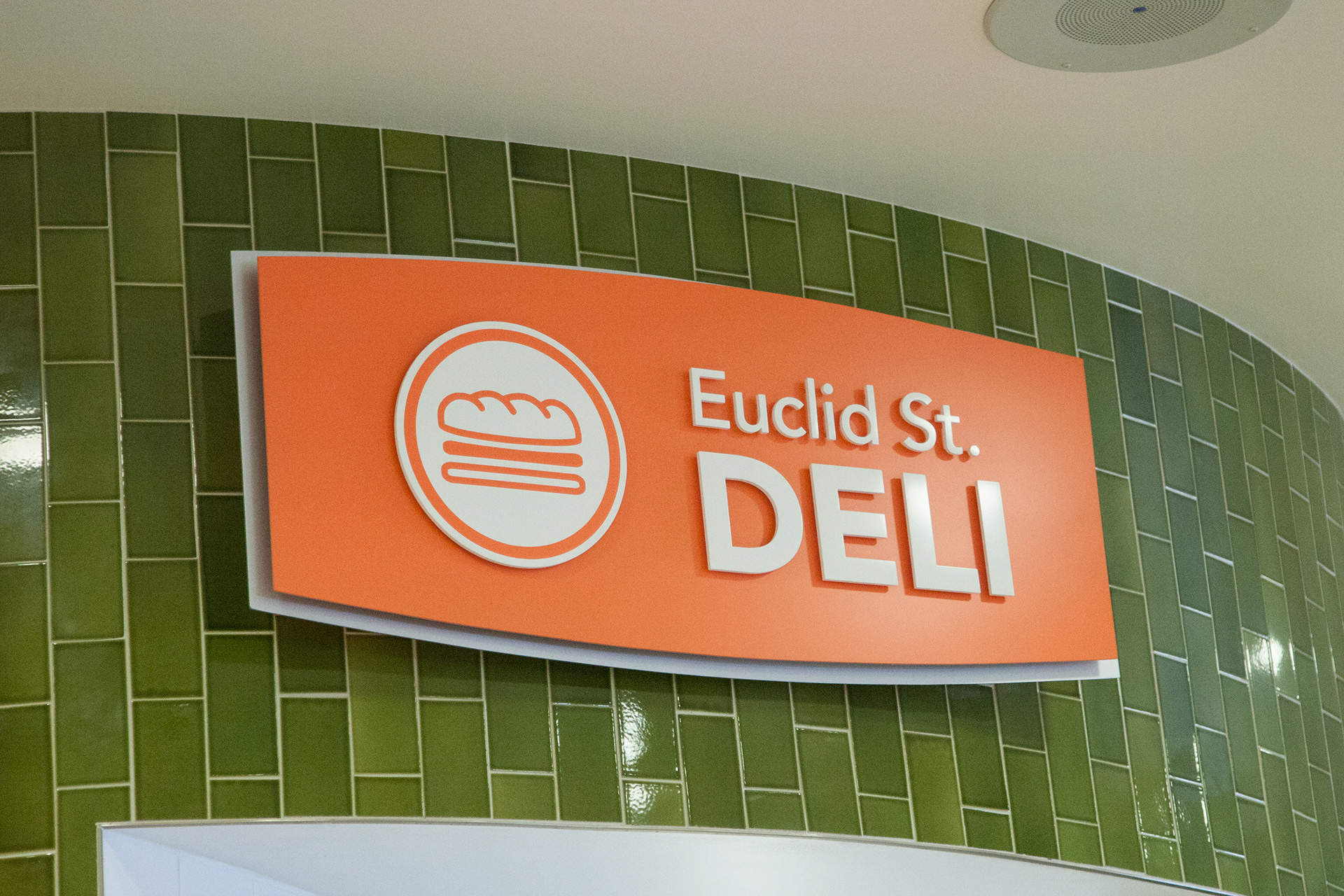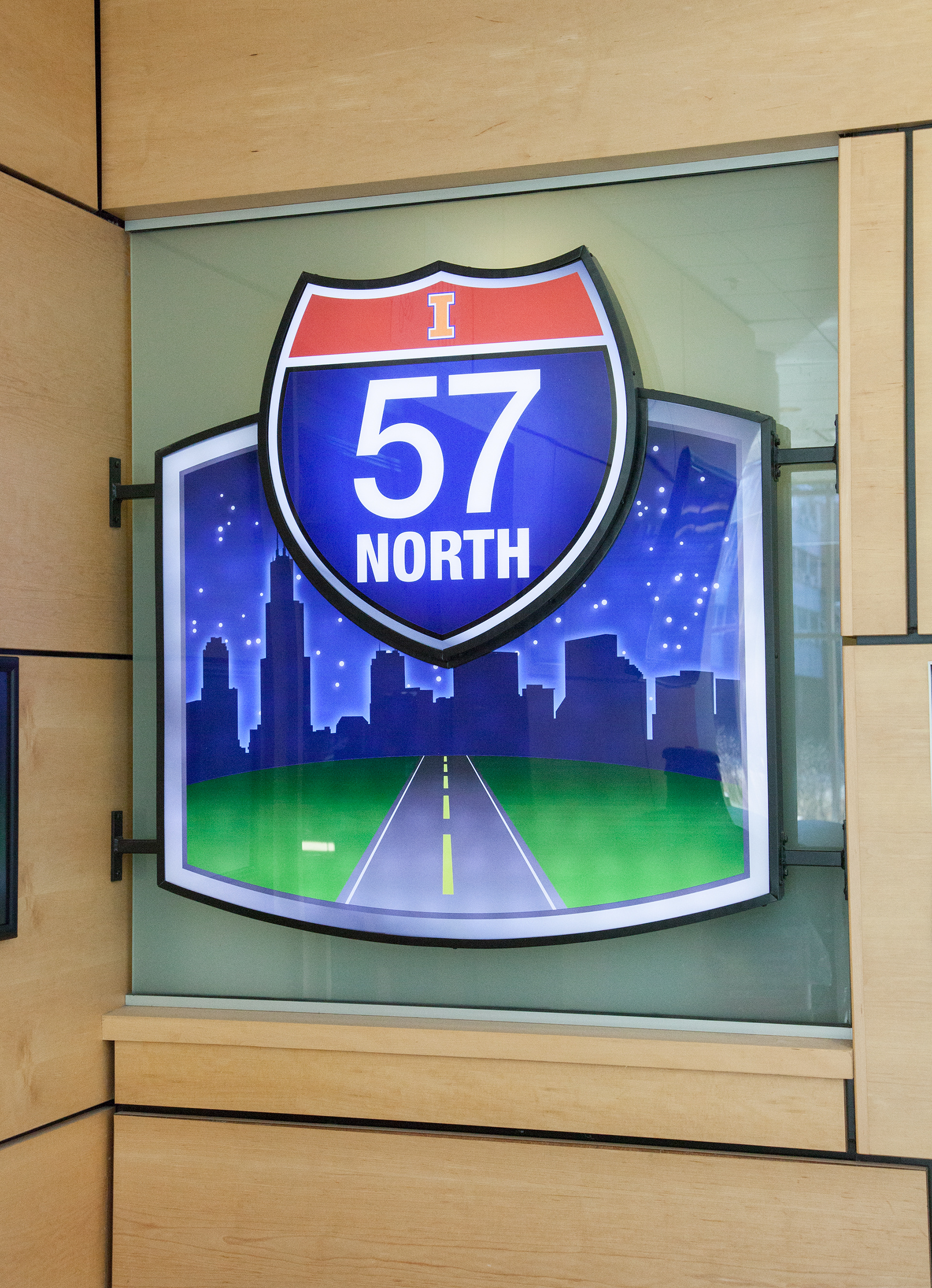 Signage designed for the food court in the Student Dining Residential Programs building at the University of Illinois.
